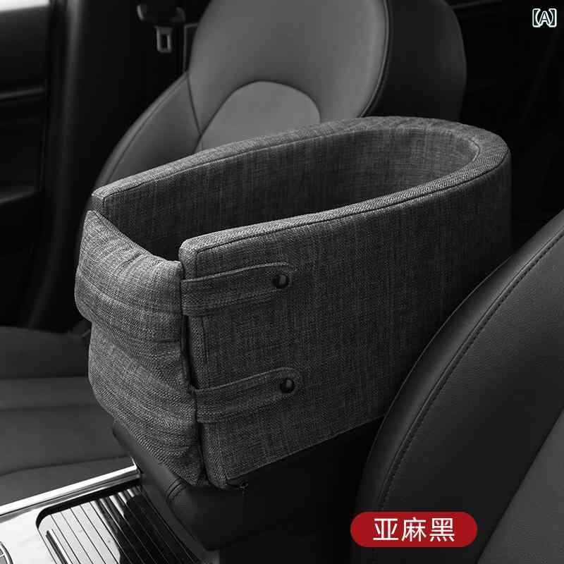 ペット用 ドライブベッド 小型犬 猫用 車載 中央コンソール シート 汚れ防止 リネン クッション ブラック レザー調