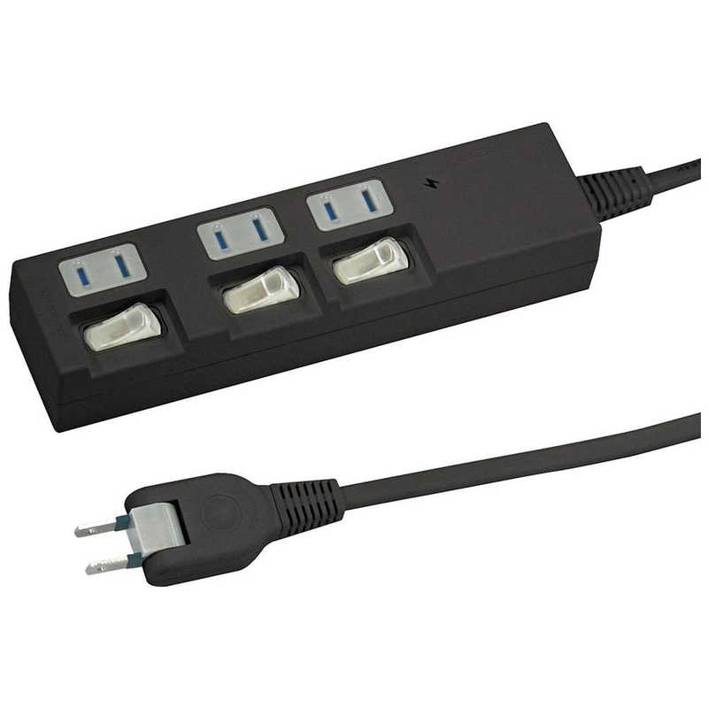 ヤザワ 個別スイッチ付節電タップ3個口1m 黒 YZBKS331B