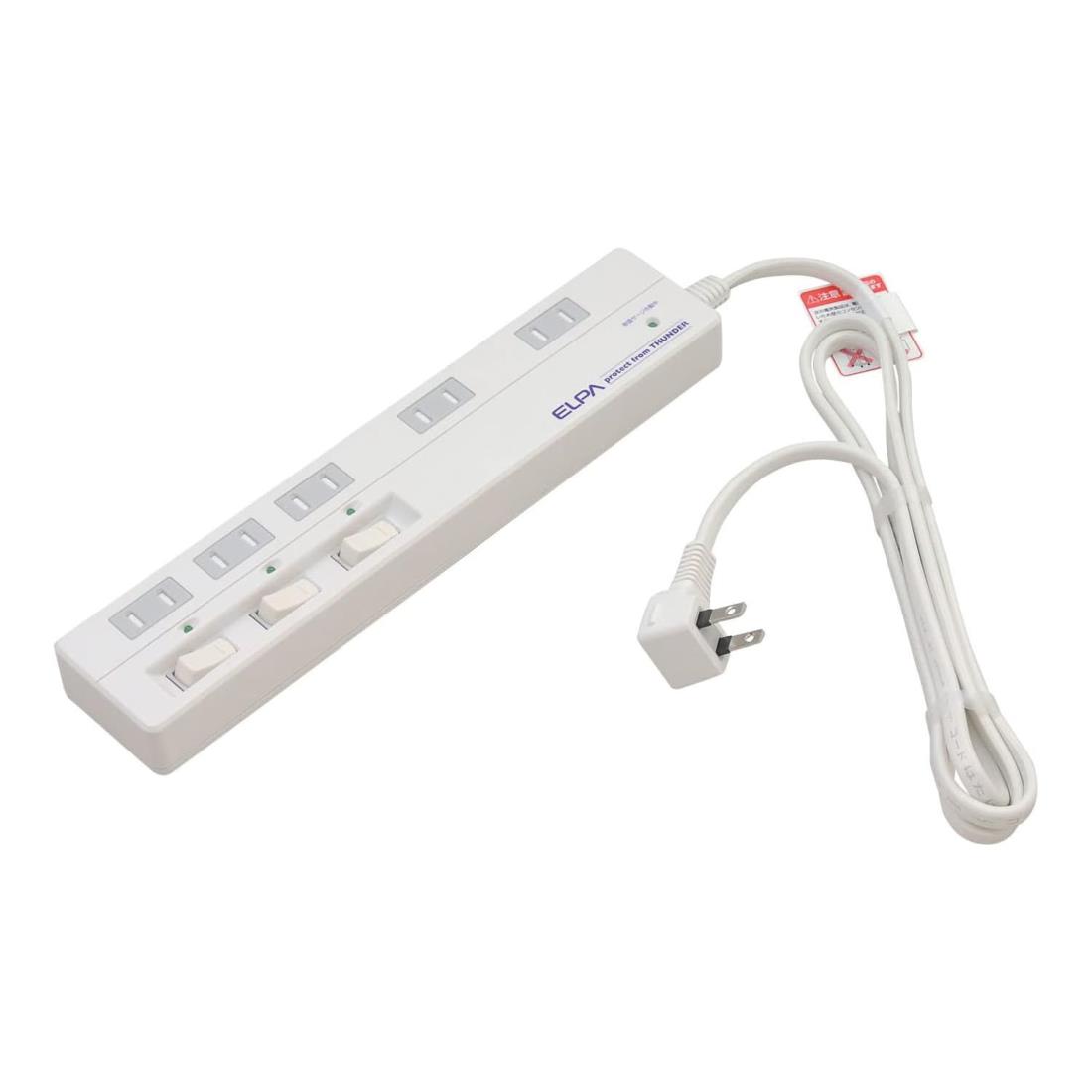 エルパ (ELPA) サージ付タップ コンセント 延長コード 安全 耐雷 5個口 1.5m 扉付 独立スイッチ WLS-5015B(W)