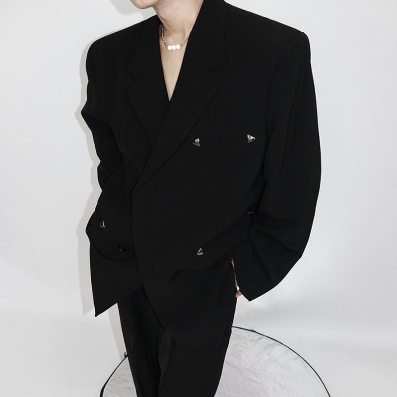 ジャケット 男性用 テーラードジャケット 綿混紡 ブラック 無地 春夏 肩パッド入り ゆったりシルエット