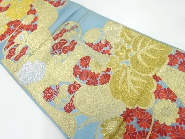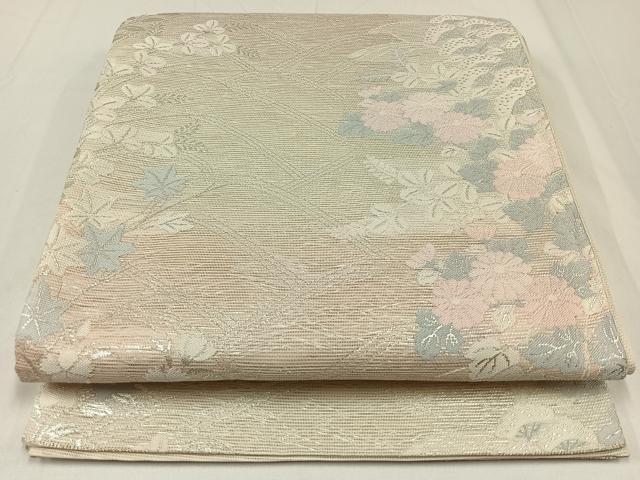 平和屋着物*夏物 六通柄袋帯 草花文 銀糸 正絹 逸品 未使用 AAAY5803jh