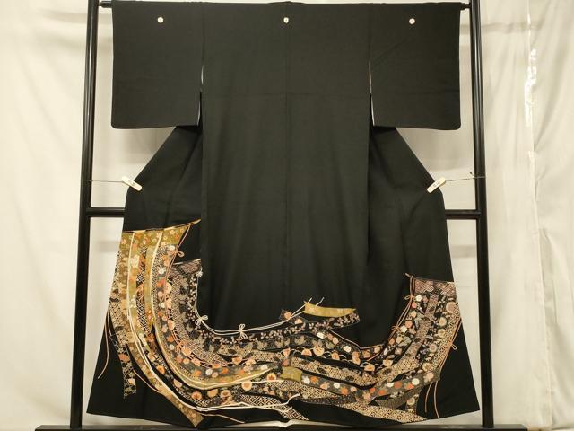 平和屋着物■豪華黒留袖 駒刺繍 几帳吉祥草花文 金彩 正絹 逸品 CABA2850in