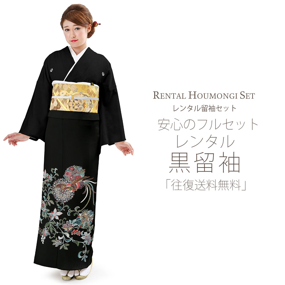 レンタル 黒留袖 フルセット 【結婚式 婚礼 貸衣装】 鳳凰 紋入り Lサイズ【往復送料無料】