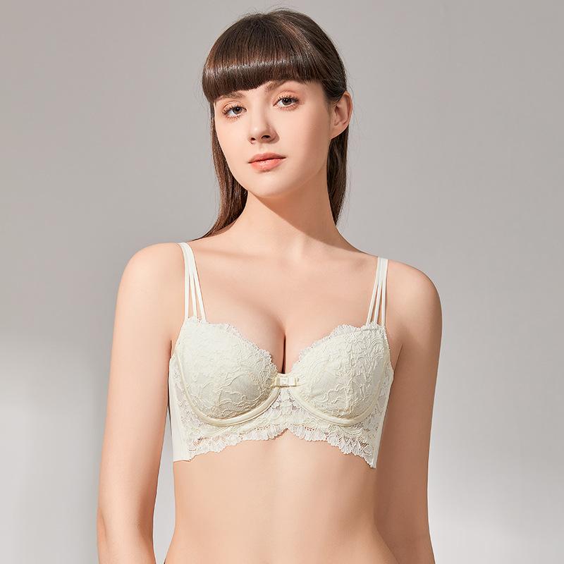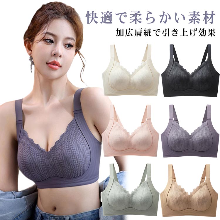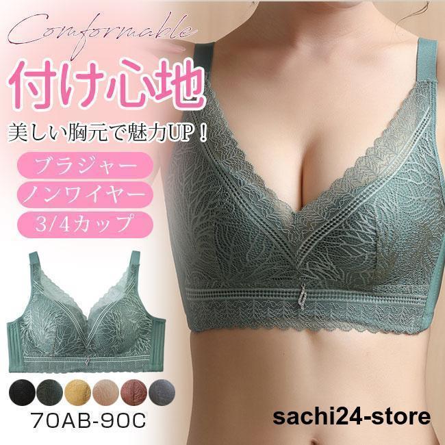 ブラジャー ショーツ 2点セット ランジェリー レース つけ心地 花柄 リボン付き ブラ ノンワイヤー 4段ホック 下厚パッド付き