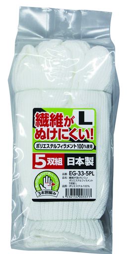 [福徳産業]ポリエステルフィラメント手袋白約20.5cmEG-33-5PL5双組