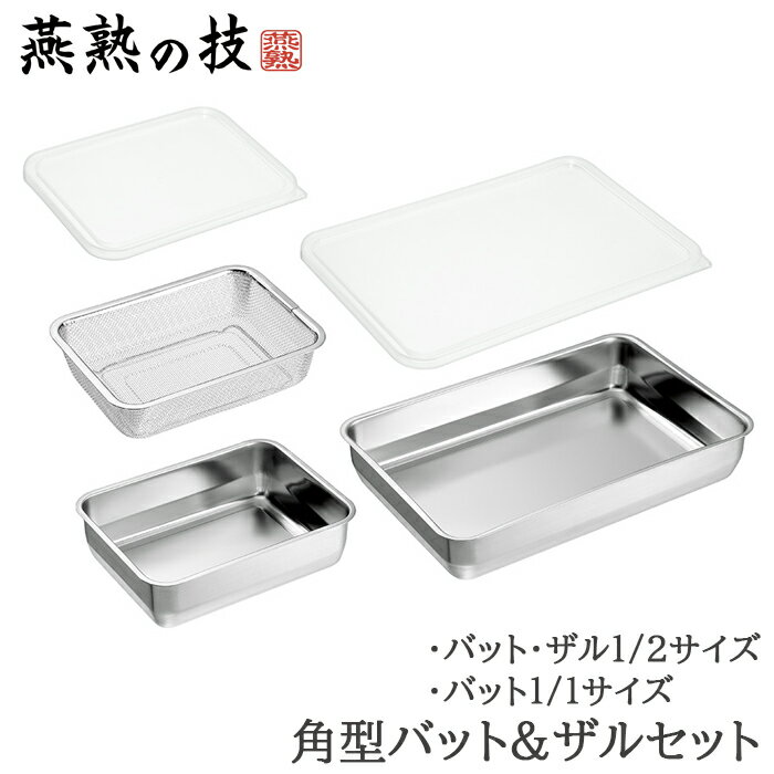 バット ザル セット ステンレス 角型 蓋付き バット 1/2&1/1 ざる 1/2 サイズ 日本製 燕三条