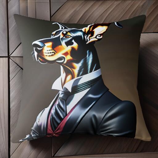 スーツ ドーベルマン ベスト ネクタイ クッションカバー 45×45cm アニマル柄 おしゃれ 可愛い クッション本体付き 正方形
