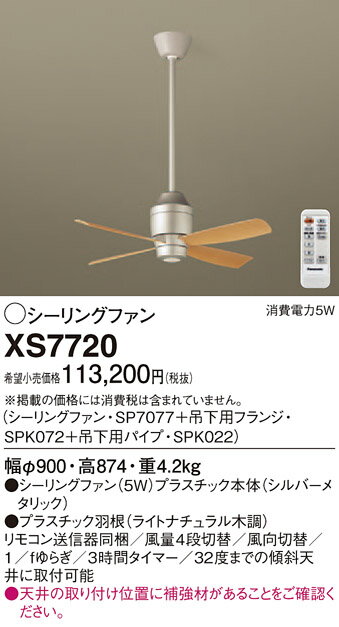 XS7720 パナソニック シーリングファン(パイプ長600)