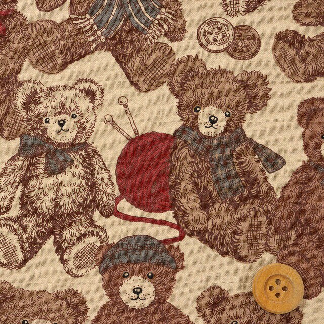 テディベア柄 Good old days/ベージュ【シーチング生地】