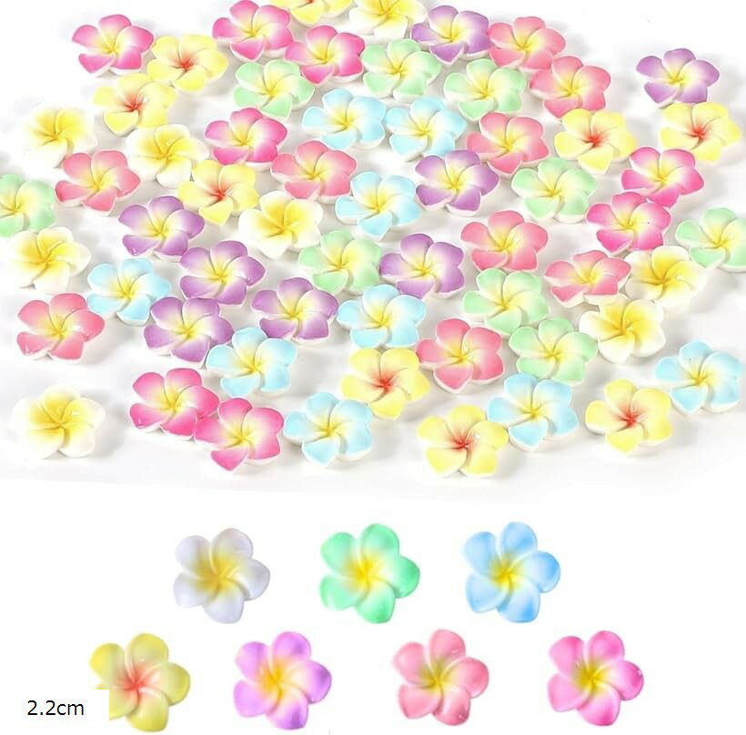 デコパーツ プルメリア 7色 70個セット レジン 花 ビーズ ネイルパーツ 2.2cm