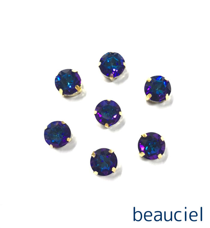 【10mm 8pcs】 真鍮製 台座付きガラスストーン パープル×ブルーグリーン 爪付きビジュー ラウンド