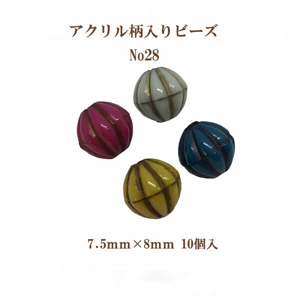 アクリルガライリビーズNo.28(7.5mm×8mm)10個入 エスニック柄 通し穴 パーツ