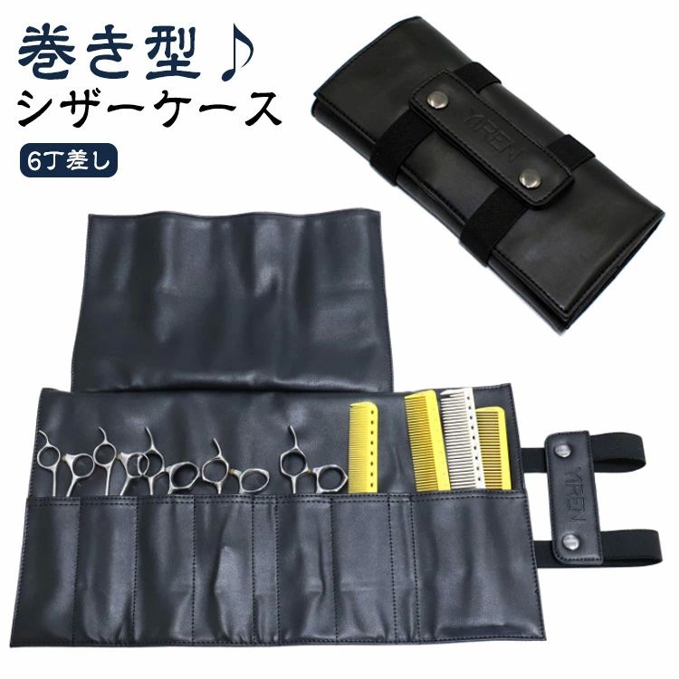 ハサミ収納 6丁挿し 巻き型 シザーバッグ 開閉簡単 収納ツール 持ち運び 花屋 理容師 トリマー 美容師 革 レザー調 シック おし