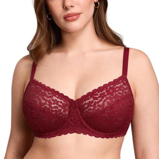 [DOBREVA]ブラジャー花柄レース大きいサイズレディースワイヤー入りレースカッププラスサイズグラマーチャイニーズレッドD95