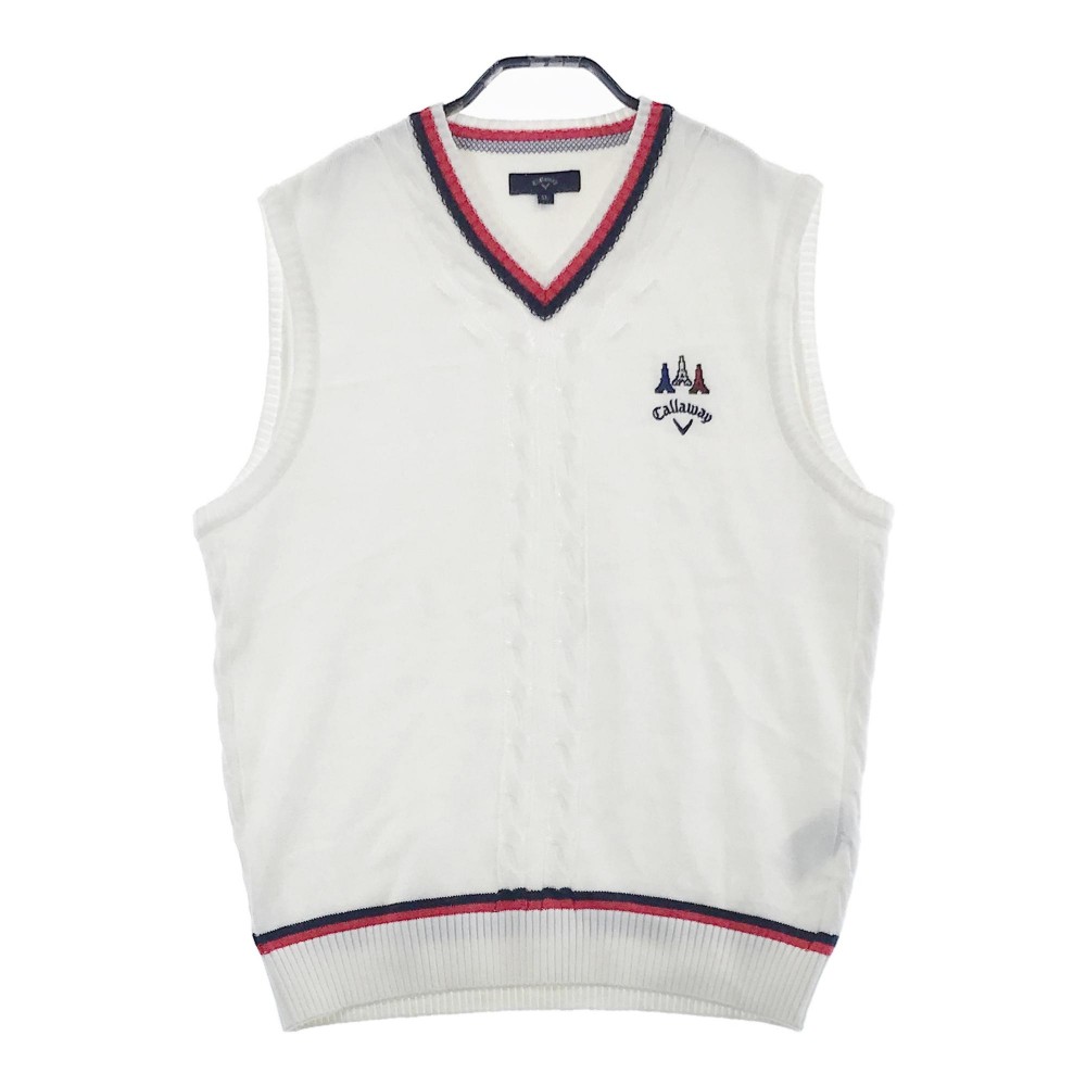 CALLAWAY キャロウェイ ウール混 Vネック ニットベスト ホワイト系 LL 【中古】ゴルフウェア メンズ