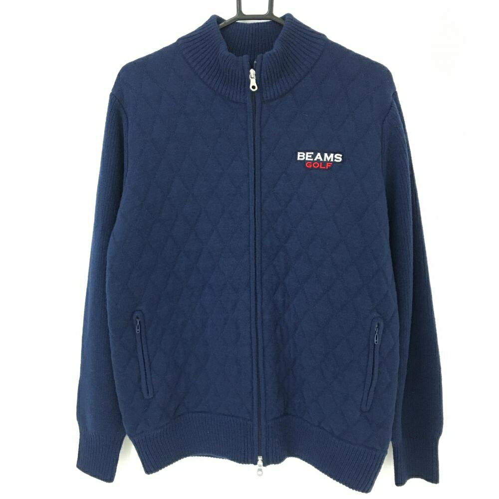 【美品】ビームスゴルフ 中綿ニットジャケット ネイビー 身頃ダイヤ柄地模様 メンズ L ゴルフウェア BEAMS GOLF