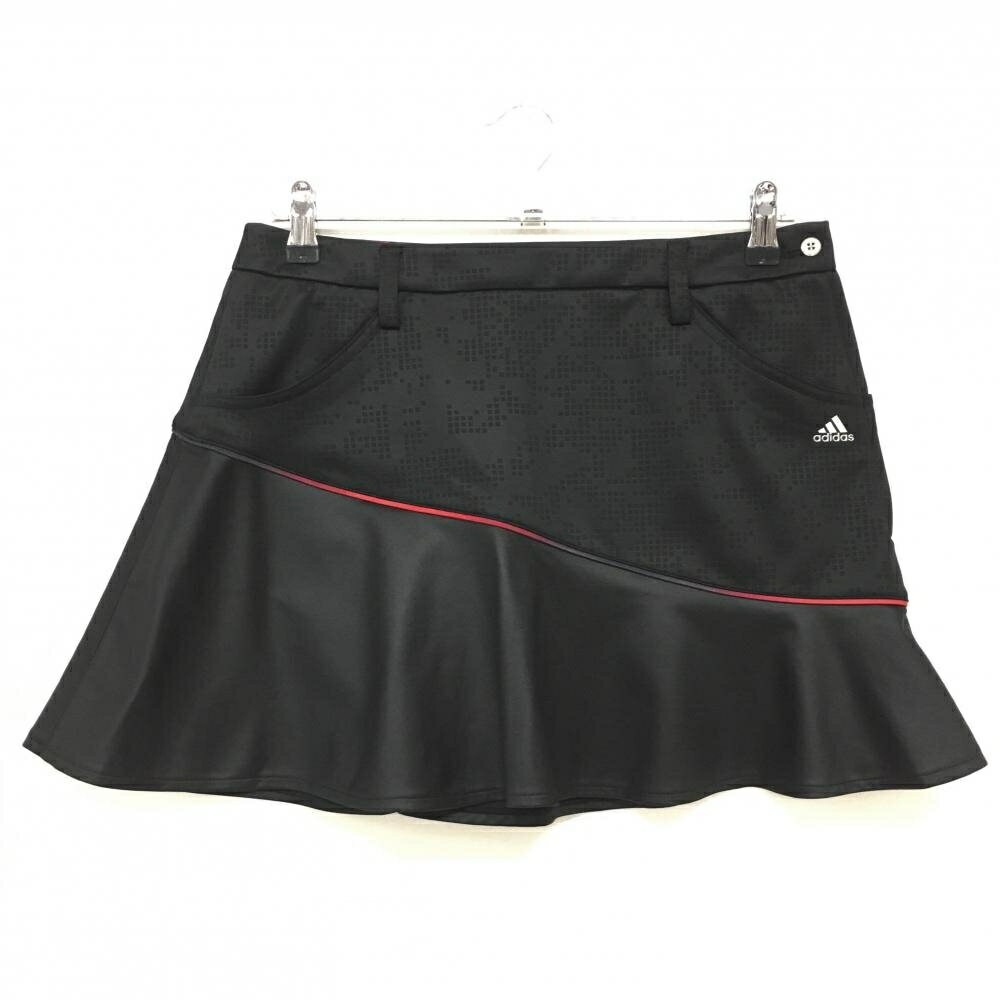 【超美品】アディダス スカート 黒 上方総柄地模様 ストレッチ レディース L ゴルフウェア adidas