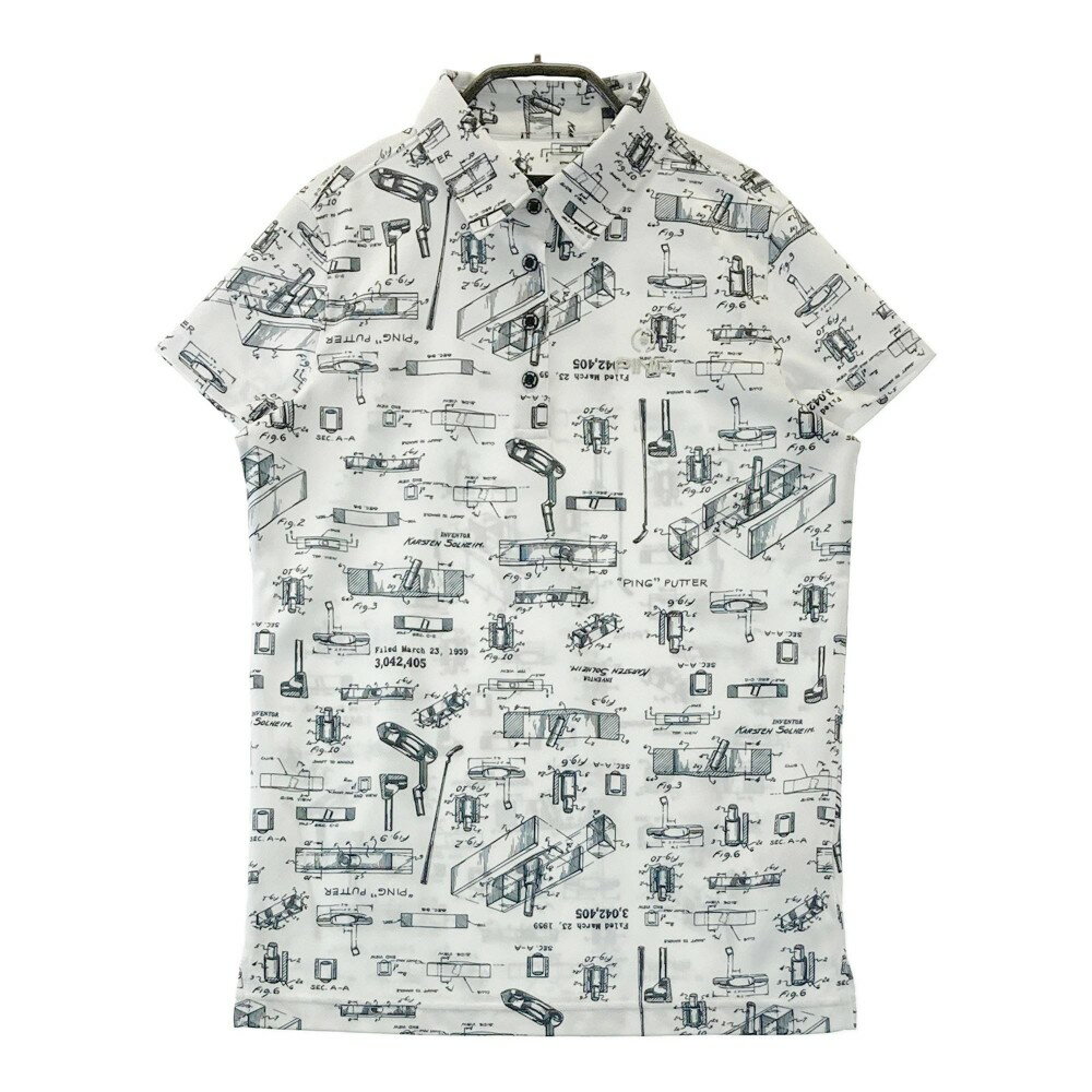 PING ピン 半袖ポロシャツ 総柄 ホワイト系 M 【中古】ゴルフウェア レディース