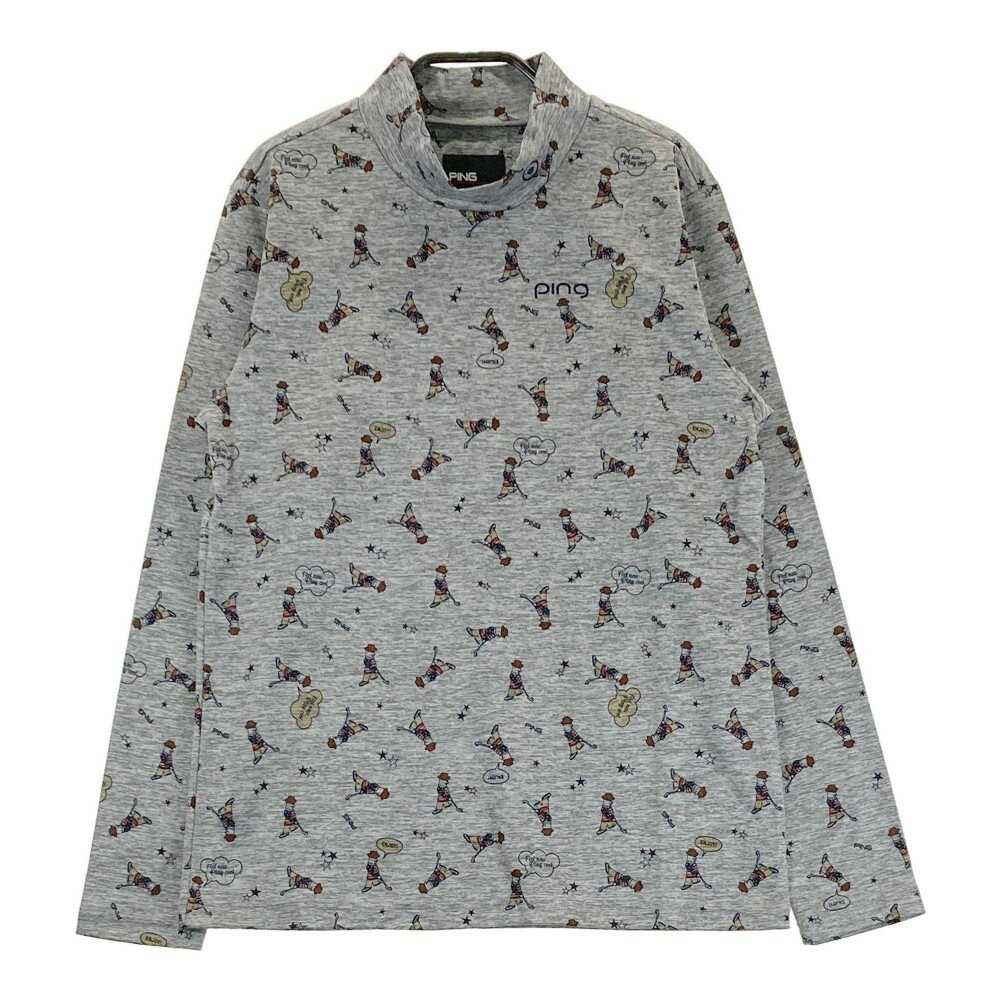 PING ピン ハイネック長袖Tシャツ 総柄 グレー系 M 【中古】ゴルフウェア レディース