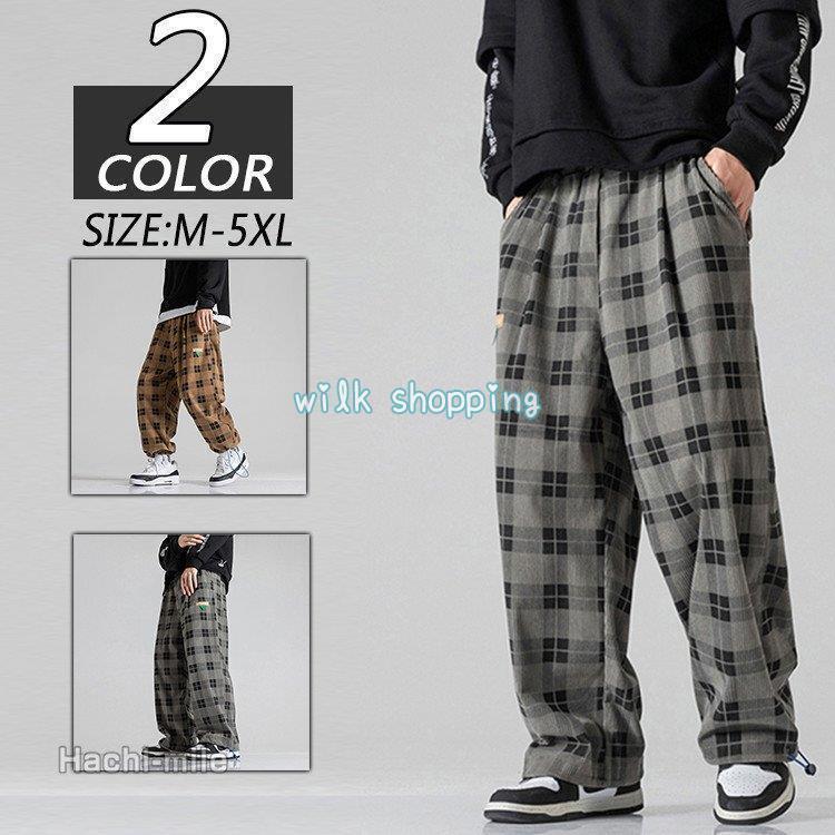 ワイドパンツ メンズ スウェット 大きいサイズ ゆったり チェック柄 太め 韓国風 ロング丈 春 秋 学生 お兄系