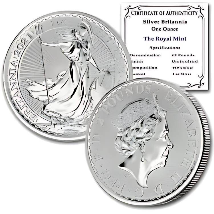 英国 2021 1オンス シルバー ブリタニア 2 ポンド ブリリアント 未流通 CoA付き