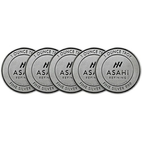 1オンス シルバーラウンド 5枚 - アサヒ ルナ スネーク デザイン .999 ファイン