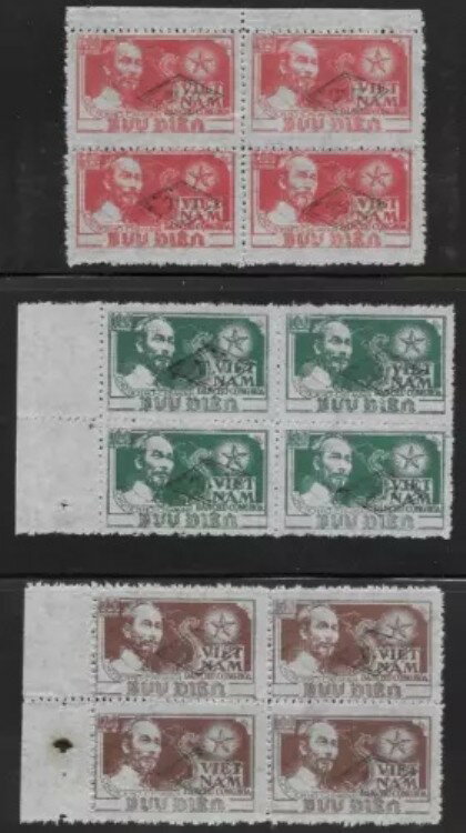 北ベトナム スコット #1-3 オーバープリント T.T. ホーチミンと地図 1951-55、4 部構成