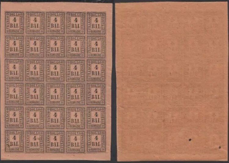 イタリア 1892年 - ロマーニャ - MNH切手。Mi Nr.: 5。25枚の小さなシート。再版(VG) MV-13347