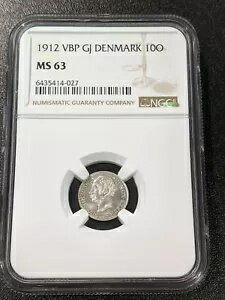 1912 VBP GJ MS63 デンマーク シルバー 10 鉱石 KM 807 フレデリク 8 世