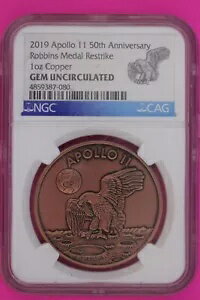 2019 アポロ 11 号 50 番目のジェム BU アニブ ロビンズ レストライク 1 オンス銅メダル NGC 974