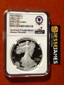 2021 W プルーフ シルバー イーグル NGC PF70 ウルトラ カメオ 早期リリース パープル ハート T2
