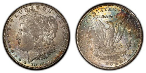 1902-O 1ドルモルガン・ダラー - パステルレインボートーニング - NGC MS 64 - ビデオ - SKU-D3127