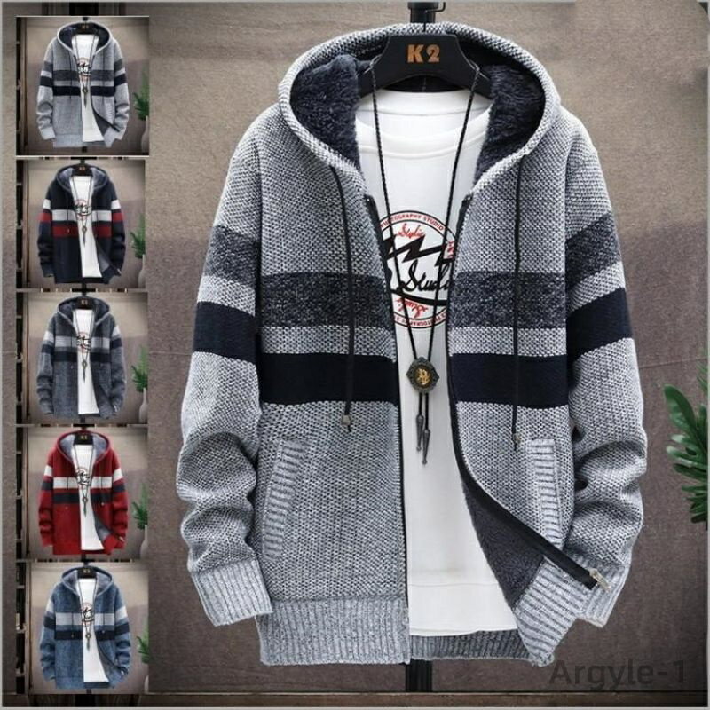 【送料無料】カーディガン メンズ ニットセーター パーカー 防寒 ジャケット 厚手 裏起毛 フード付き アウター 秋 暖かい