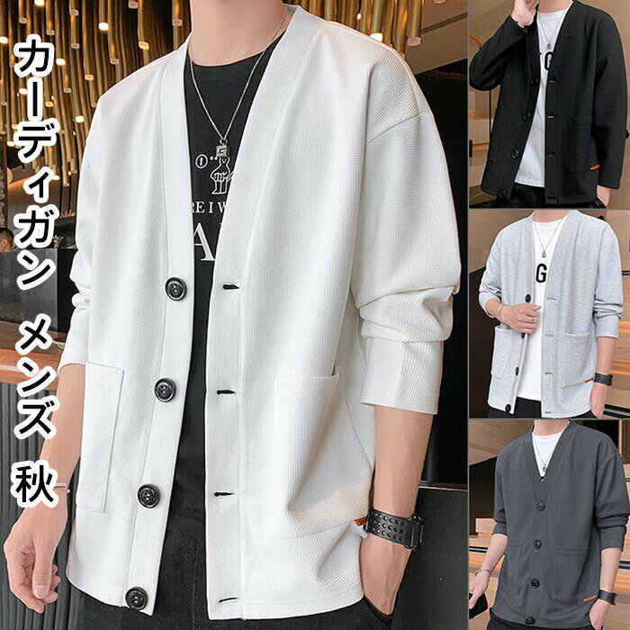 ニット カーディガン メンズ 男性用 混紡 長袖 襟付き 無地 ビジネス 紳士 カジュアル トップス 春秋