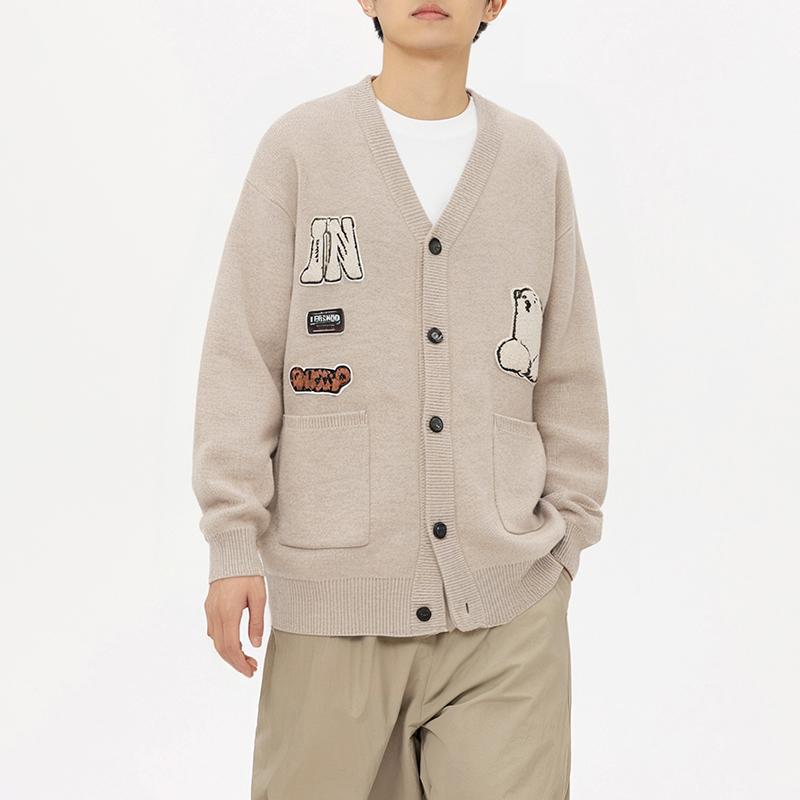 カーディガン メンズ レディース カップル ニット 春秋 レトロ カレッジ Vネック セーター ジャケット グレー ベージュ ネイビー