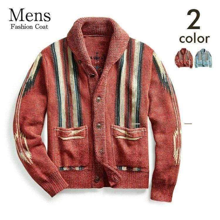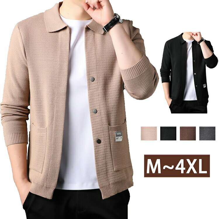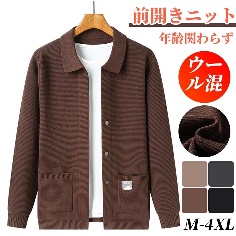 ジ ニットセーター おしゃれ カジュアル 前開き 長袖 大きいサイズ セーター 襟付き ウール混 ショート丈 アウター 春秋 メンズ