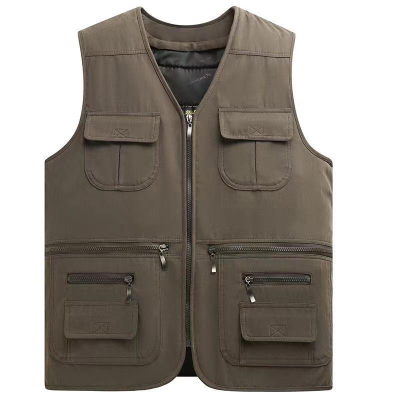 ニットベスト 男性用 カンガルーポケット Vネック ウール混紡 ミドル丈 厚手 秋冬 防寒 暖か 深棕色