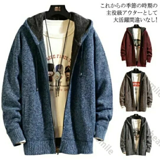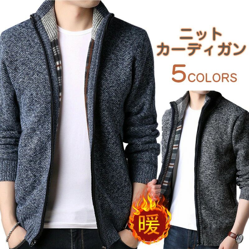 ニット カーディガン メンズ ジャケット 裏起毛 アウター ジップアップ 大きいサイズ 無地 通勤 暖かい 秋冬