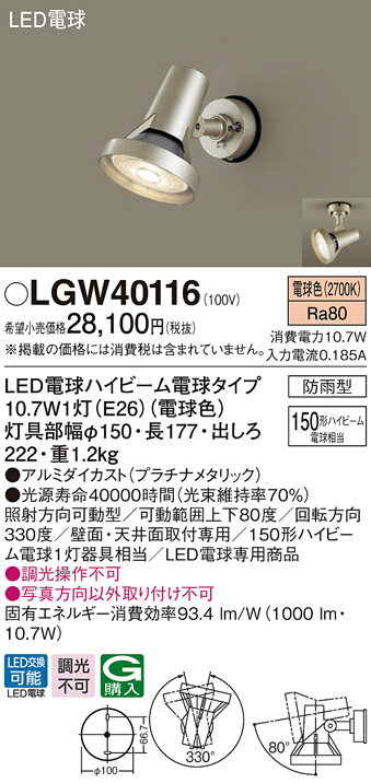 (LINEクーポン有)(送料無料) パナソニック LGW40116 LEDスポットライト150形電球色 Panasonic