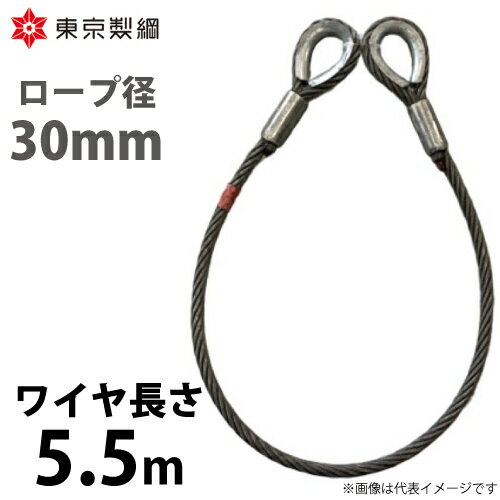 東京製綱 ワイヤーロープ ハイクロスワイヤ 両シンブルトヨロック ワイヤ径:30mm 長さ:5.5m 重量:26.20kg
