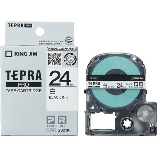 SS24K KING JIM 【純正】「テプラ」PROテープ 24mm 白ラベル/黒文字 長