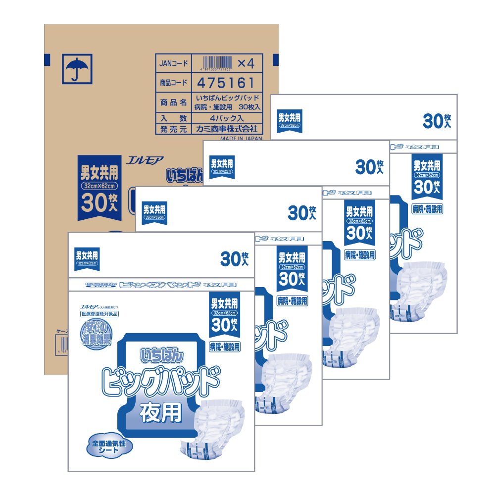エルモアいちばん エルモア いちばん ビッグパッド 病院施設用 男女共用 30枚4(テープタイプ用)