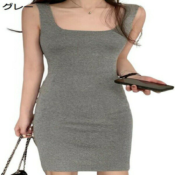 ミニ タイト ワンピース インナー タンクトップ 春 夏 無地 脚長 セクシー ニット 綿 レディース