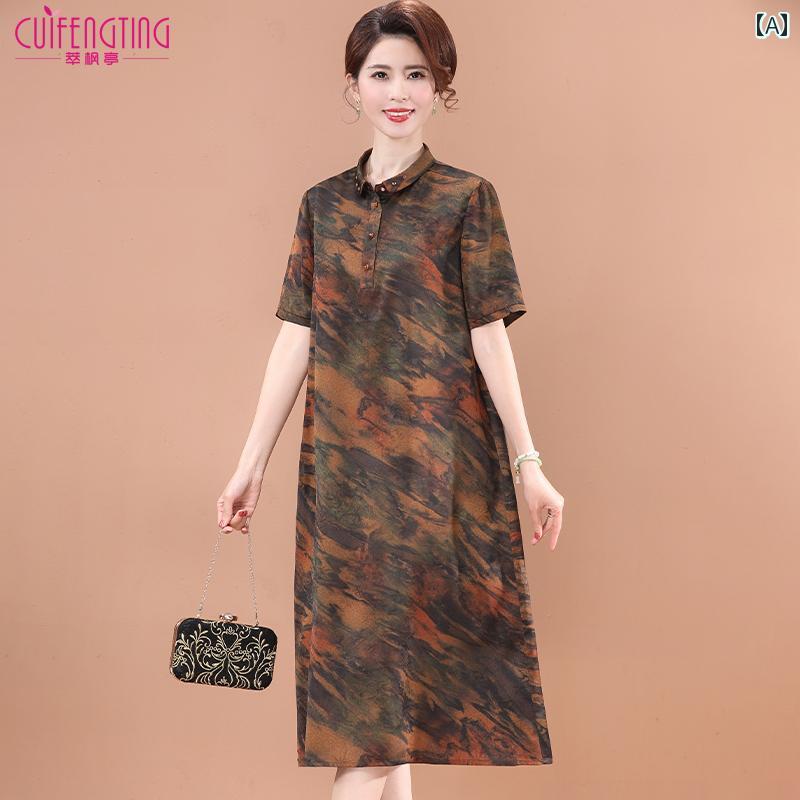 レディース ワンピース ドレス 婦人服 ミドルエイジ エレガント カジュアル 上品 アート 夏 プリント 柄物 半袖 ゆったり