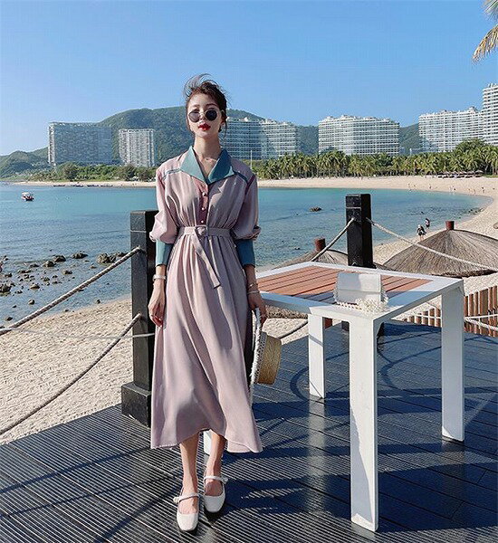 受け取って腰 ロングスカート シャツワンピ 肌にやさしい スリム