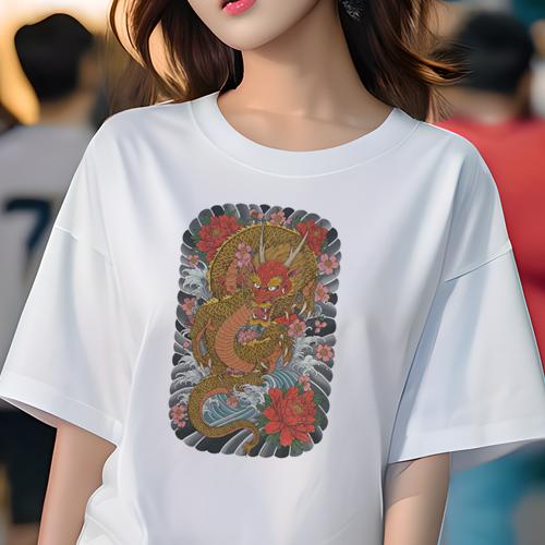 Tシャツ レディース 犬ファン 半袖 春夏 プリント カジュアル かわいい 人間用 派手 個性的 ドラゴン 龍 竜 花 波