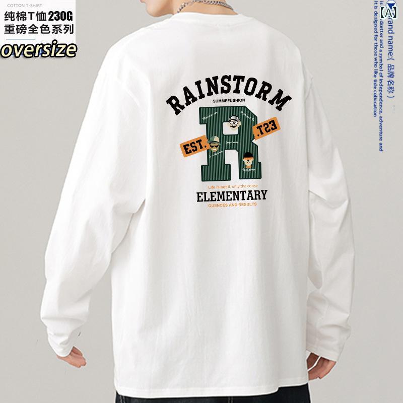 Tシャツ 男性用 長袖 コットン ドロップショルダー ルーズ ゆったり プリント 秋 春 トップス カットソー