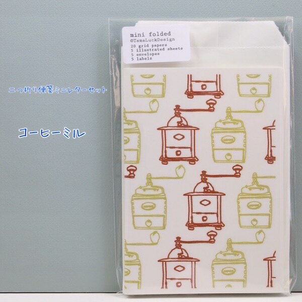 透け感のある封筒付き・二つ折りミニレターセットエムデザイン・ミニレターセットコーヒーミル