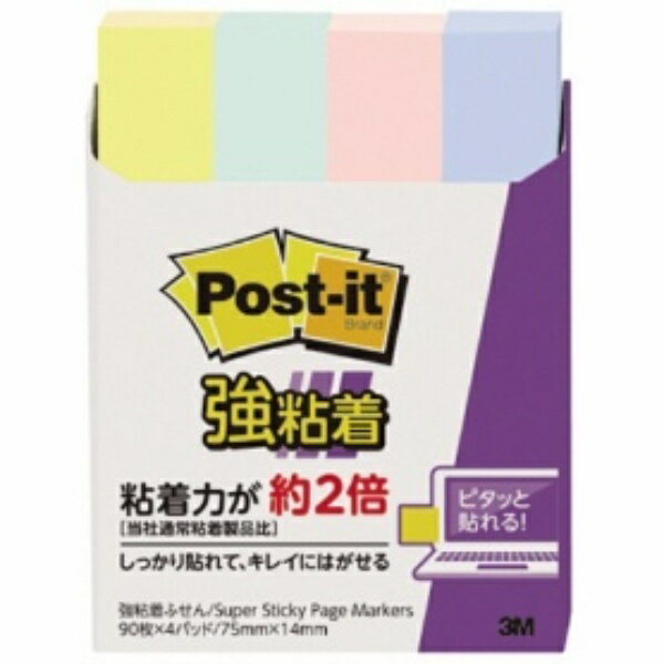 3M ポスト・イット 強粘着 ふせん 小 75×14mm パステルカラー 4色混色 560SS−K 1パック(4冊)