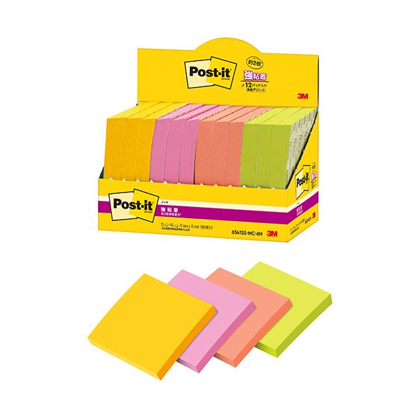 3Mポスト・イット 強粘着ノート マルチカラー6 75×75mm 4色 6541SS-MC-6N 1パック(12冊)